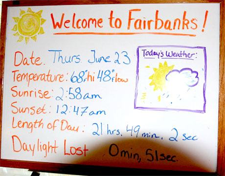 Temperatures here vary more than any other city in the world: From 90+ degrees in the summer to 50 below in the winter. Fairbanksans are a hearty lot!