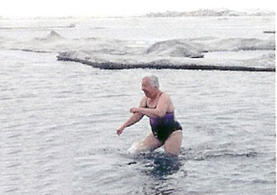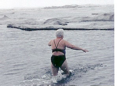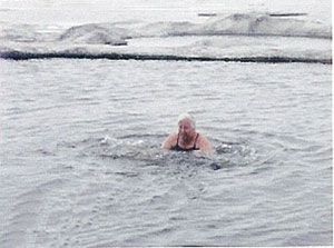 The highpoint of the Barrow trip: There is now a new member of the Polar Bear Club--Dr. Karen, who marched boldly off into the freezing Arctic Ocean--some folks will go anywhere for a good bath--er....baptism??! Fortunately, Karen emerged cold, but unscathed.