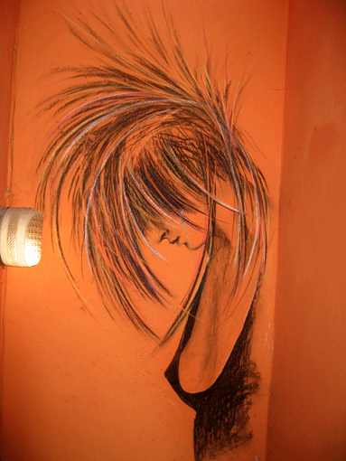 narrow staircase (quite long) there were drawings such as this, "so you wouldn't