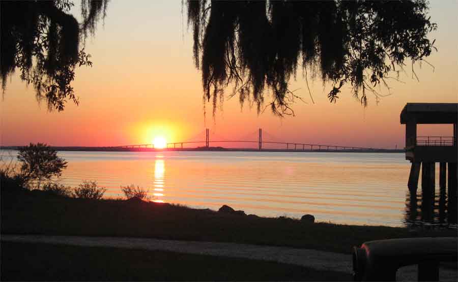 Here's the view from Jekyll Point, near the campground, of the Sidney Lanier Bridge, leading to Brunswick.