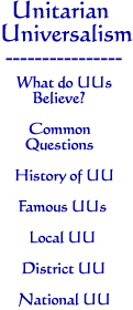 Each Unitarian Universalist congregation is involved in many kinds of programs. Worship is held regularly, the insights of the past and present are shared with those who will create the future, service to the community is undertaken, and friendships are made. A visitor to a Unitarian Universalist congregation will very likely find events and activities such as church school, daycare centers, lectures and forums, support groups, family events, adult education classes, and study groups—all depending on the needs and interests of the local members.We UniteEach Unitarian Universalist congregation is the fulfillment of a long heritage that goes back hundreds of years to courageous people who struggled for freedom in thought and faith. On this continent we include the Massachusetts settlers and the founders of the republic. Outstanding Unitarians and Universalists include John Adams, Clara Barton, Oliver Wendell Holmes, Louisa May Alcott, Ralph Waldo Emerson, Susan B. Anthony, Adlai Stevenson, Eliot Richardson, and Whitney Young. Not as famous but equally worthy are the thousands of men and women in our congregations leading vital, dedicated, and useful lives.